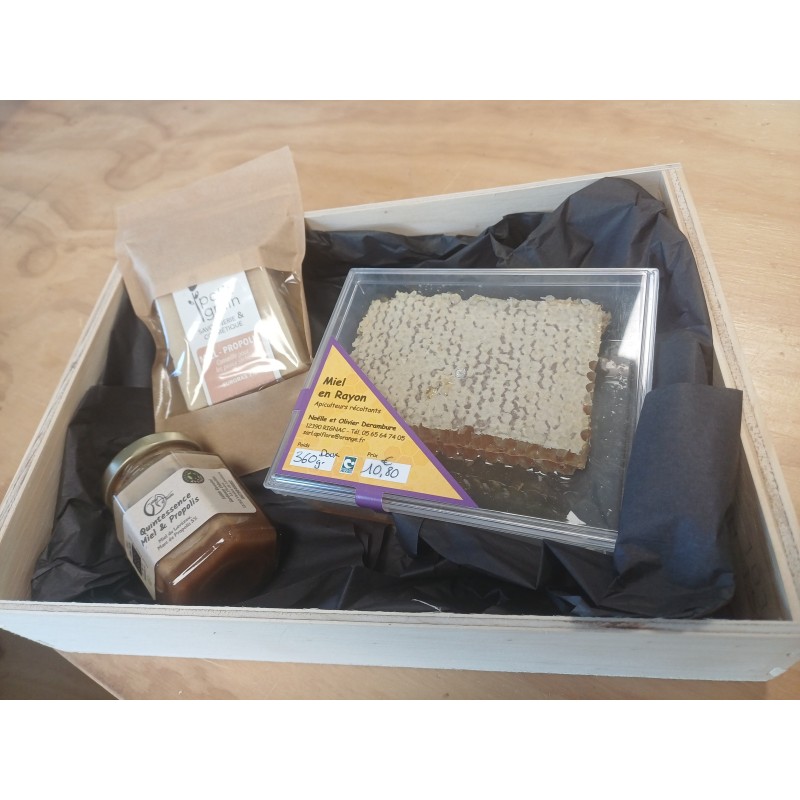 coffret : dim ext 30cm x 21.6cm h 7 cm, fabriqué dans nos ateliers en Aveyron.