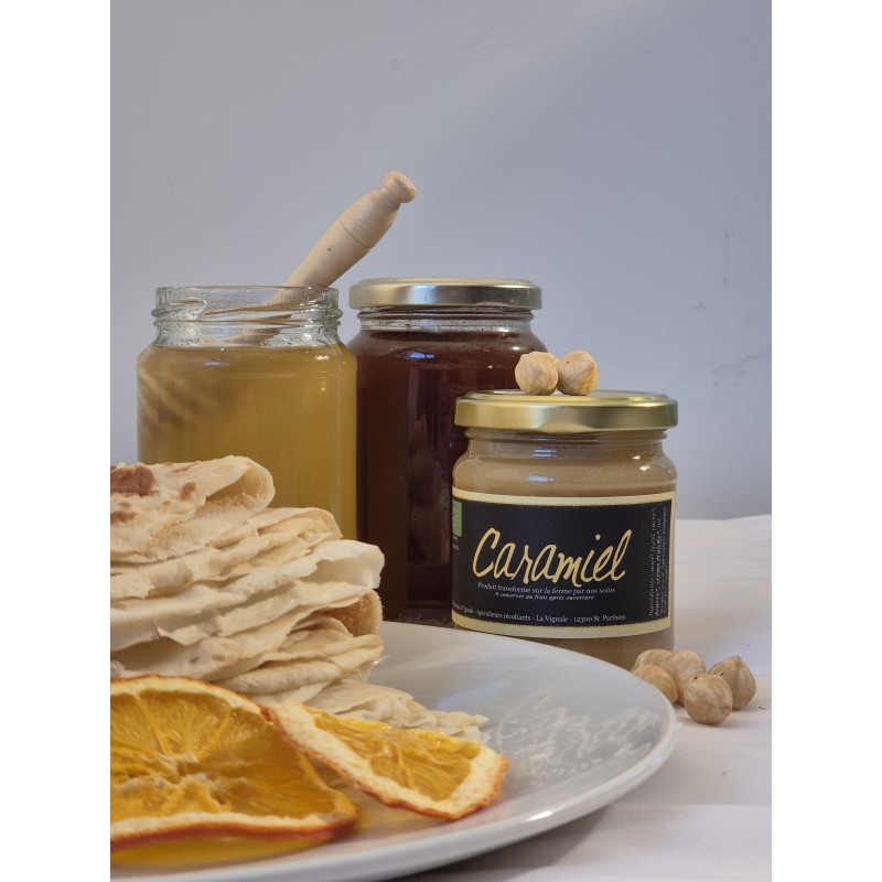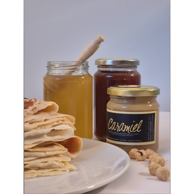 Ingrédients : miel 34% ; sucre; beurre; crème fraiche; sel.