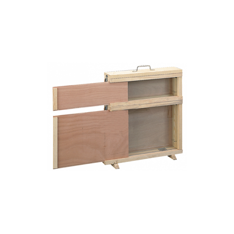 Équipée d'une poignée de transport robuste, cette ruchette est pensée pour la mobilité. Amenez-la facilement à des événements extérieurs tels que foires, marchés, écoles ou centres de loisirs pour captiver le public et sensibiliser à l'importance des pollinisateurs. La grille d'aération située sur le fond garantit une ventilation adéquate pendant le transport et assure le confort des abeilles, même lors de déplacements prolongés.